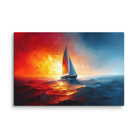 ⚡️ Promo ⚡️Tableau Bateau Coucher de Soleil : Fusion Marine