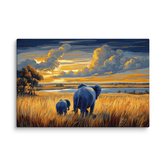 ⚡️ Promo ⚡️Tableau Animaux - Éléphants dans la Savane