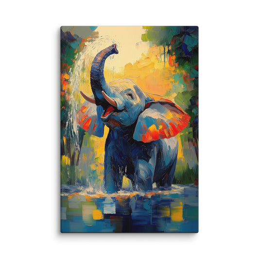 Tableau éléphant trompe en l’air – Éveil Tropical