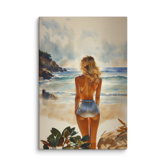 ⚡️ Promo ⚡️Peinture Femme de Dos sur la Plage Ensoleillée