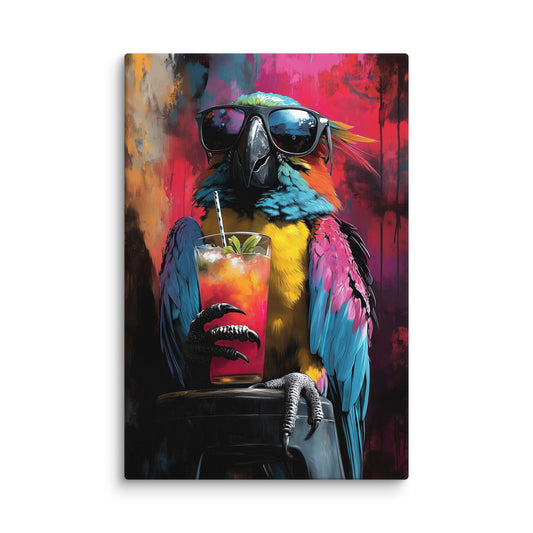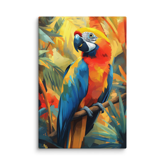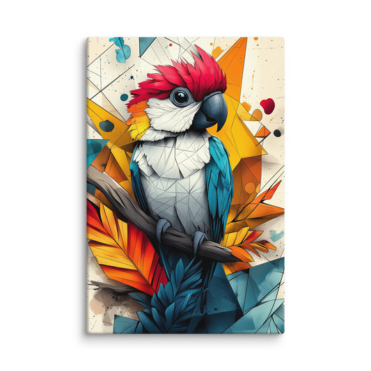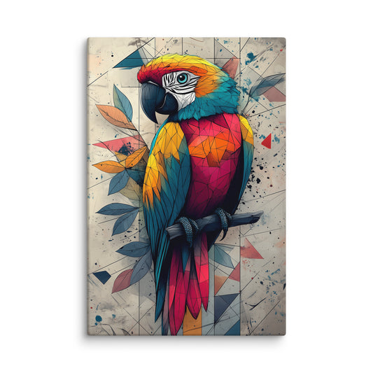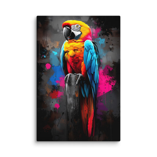 Peinture Perroquet sur Toile en Explosion Chromatique