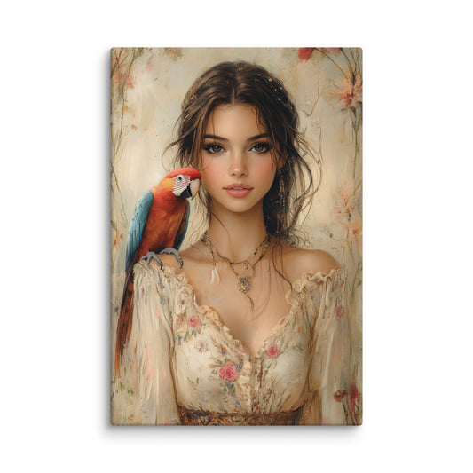 ⚡️ Promo ⚡️Peinture Femme Perroquet : L'Élégance Évoquée