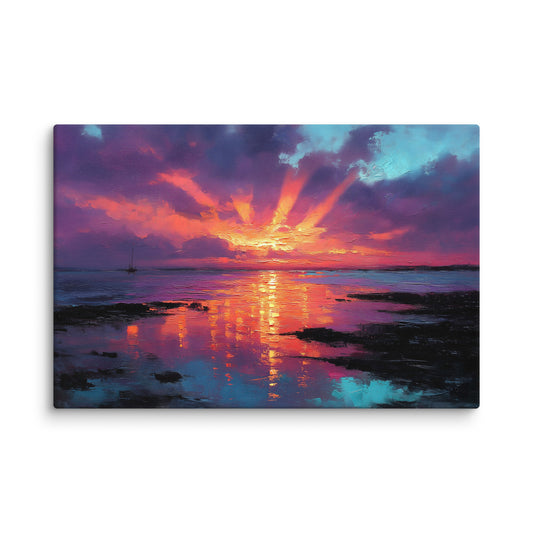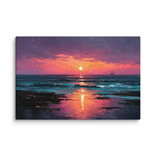 Peinture Coucher de Soleil sur la Plage : Horizons Pourprés