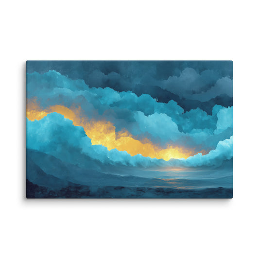 Peinture Coucher de Soleil Bleu : Éclaircie Céleste