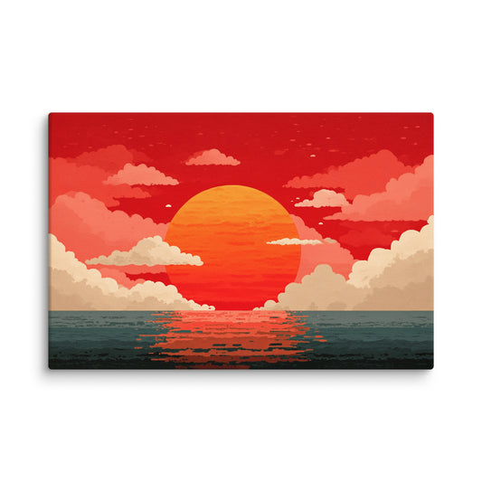 Tableau Peinture Coucher de Soleil Rouge : Horizon Écarlate