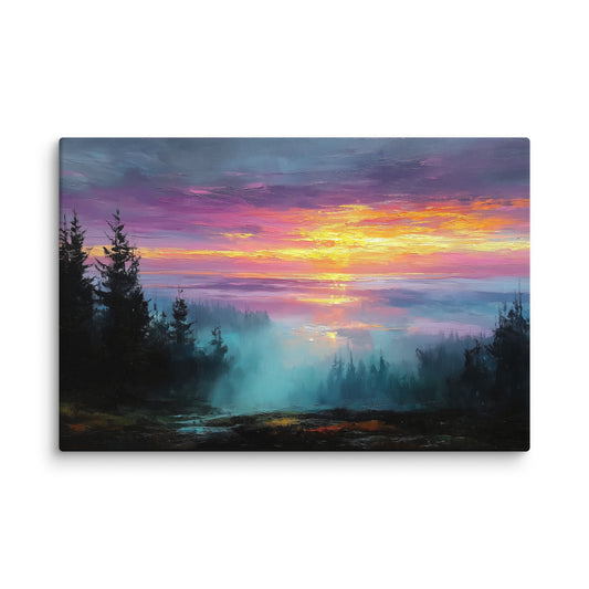 ⚡️ Promo ⚡️Grand Tableau Coucher de Soleil : Forêt Mystique