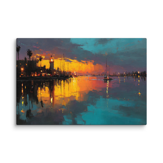 ⚡️ Promo ⚡️Tableau Port Coucher de Soleil : Marina Nocturne