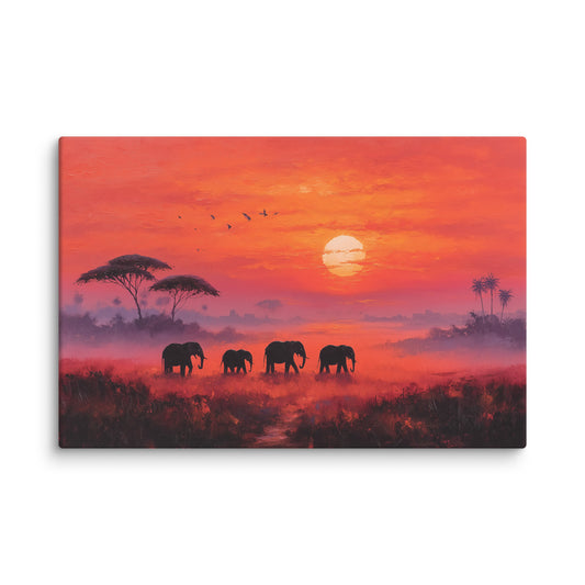 Tableau Elephant Coucher de Soleil : La Migration