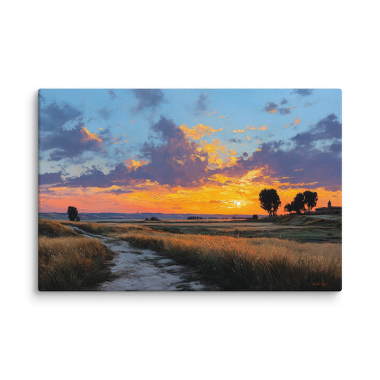 Peinture Coucher de Soleil Simple : Sérénité Champêtre