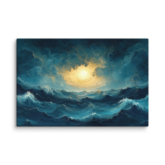⚡️ Promo ⚡️Peinture Coucher de Soleil Mer : Tempête Dorée