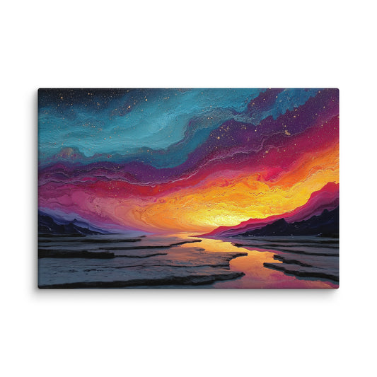 Tableau Coucher de Soleil Contemporain : Aurore Cosmique