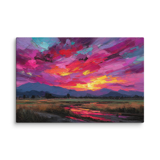 Coucher de Soleil - Tableau Impressionniste Pourpre