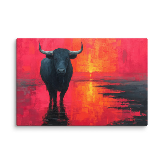 ⚡️ Promo ⚡️Tableau Taureau Camargue : Crépuscule Flamboyant