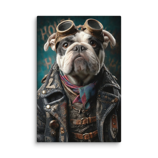 ⚡️ Promo ⚡️Tableau Chien Original : Aviateur Bulldog