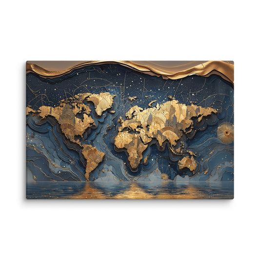 ⚡️ Promo ⚡️Tableau Carte du Monde Doré : Atlas Céleste