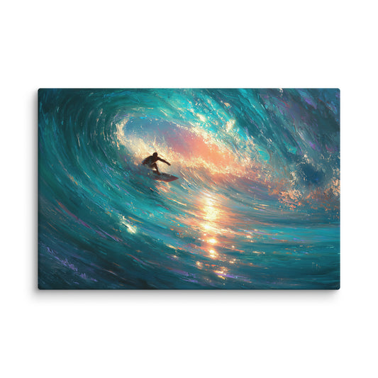 Tableau Peinture Surf – Tunnel de Lumière Émeraude