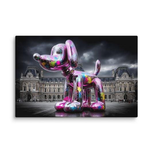 ⚡️ Promo ⚡️Tableau Chien Ballon – Pop Art Chromé au Louvre