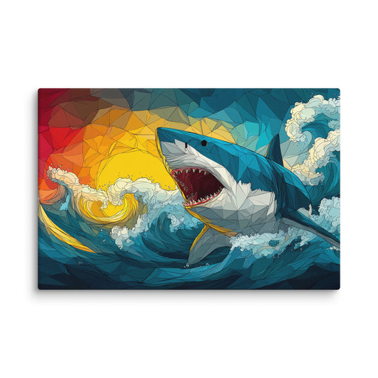 Tableau Requin Blanc – Éruption Océane au Couchant