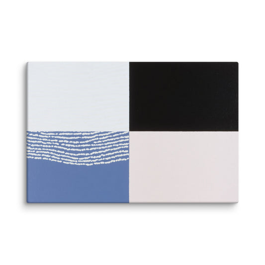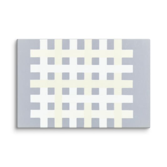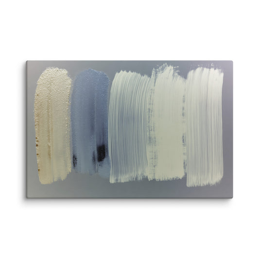 Tableau Minimaliste Géométrique en Gris et Blanc aux Bandes Bleutées