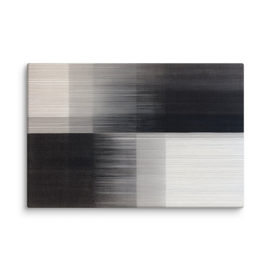 Tableau Minimaliste en Dégradé Noir et Blanc – Lignes d’Ombre, Rythmes de Lumière