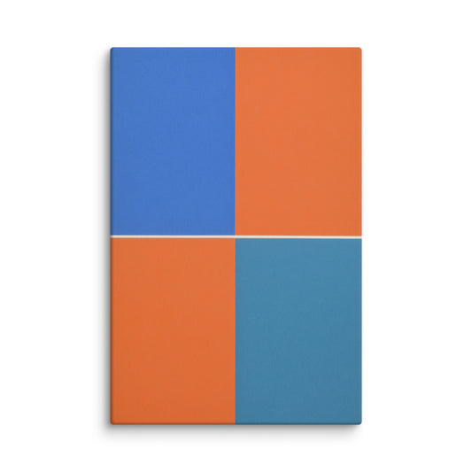 Tableau Minimaliste a Quadrants Géométriques Orange et Bleu