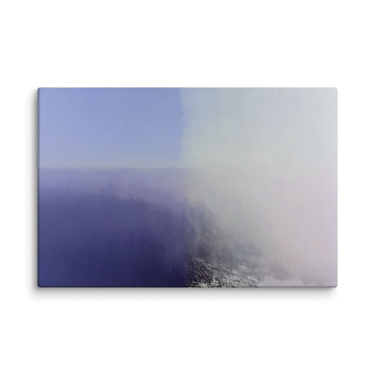 Peinture Minimaliste Dégradé Bleu et Gris Brumeux – Murmure d’Horizon