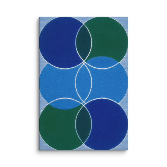 Peinture Minimaliste aux Cercles Entrelacés en Bleu et Vert