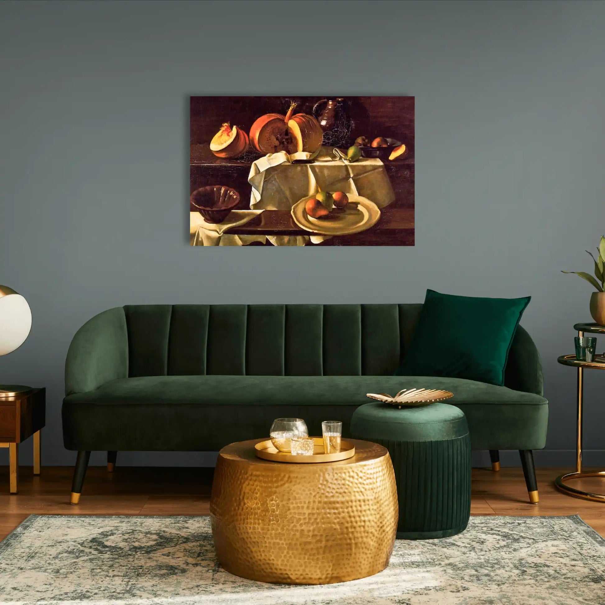 Plus qu'une simple décoration murale, cette œuvre invite à ralentir et à savourer la beauté du quotidien. Chaque détail raconte une histoire : les fruits gorgés de soleil, les poteries patinées par l'usage, la citrouille généreuse symbole d'abondance. Cette toile artistique transforme votre intérieur en véritable galerie d'art, créant un point focal qui ne manquera pas de susciter l'admiration et la contemplation de vos invités.