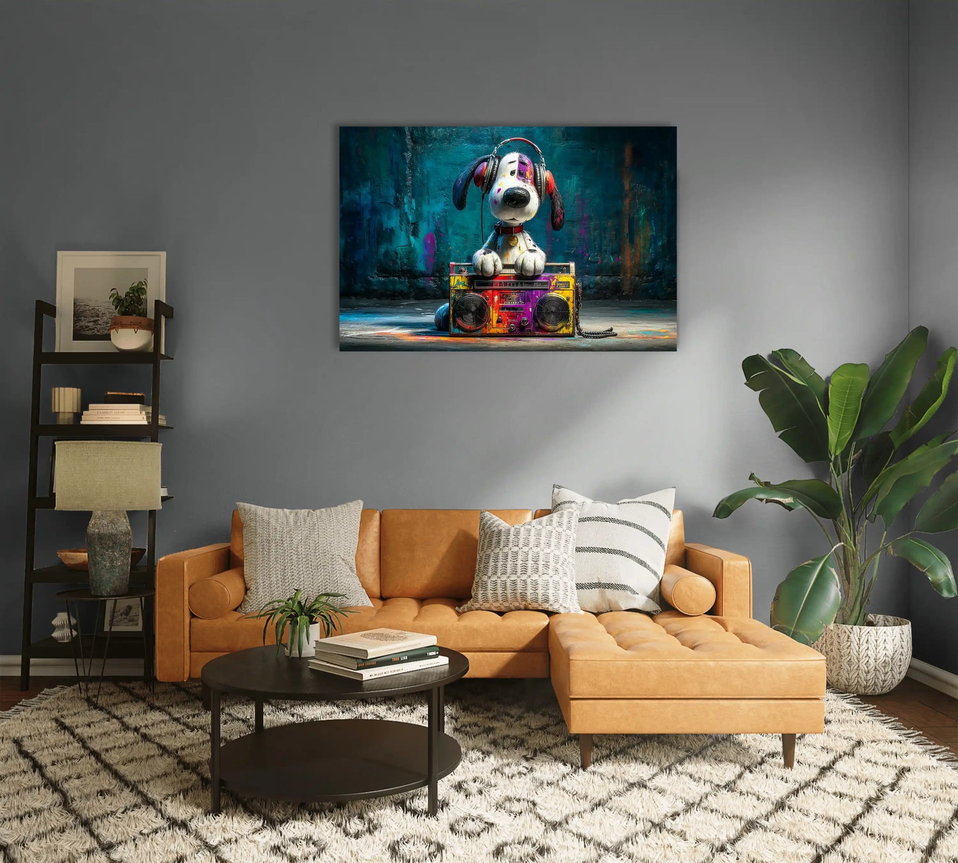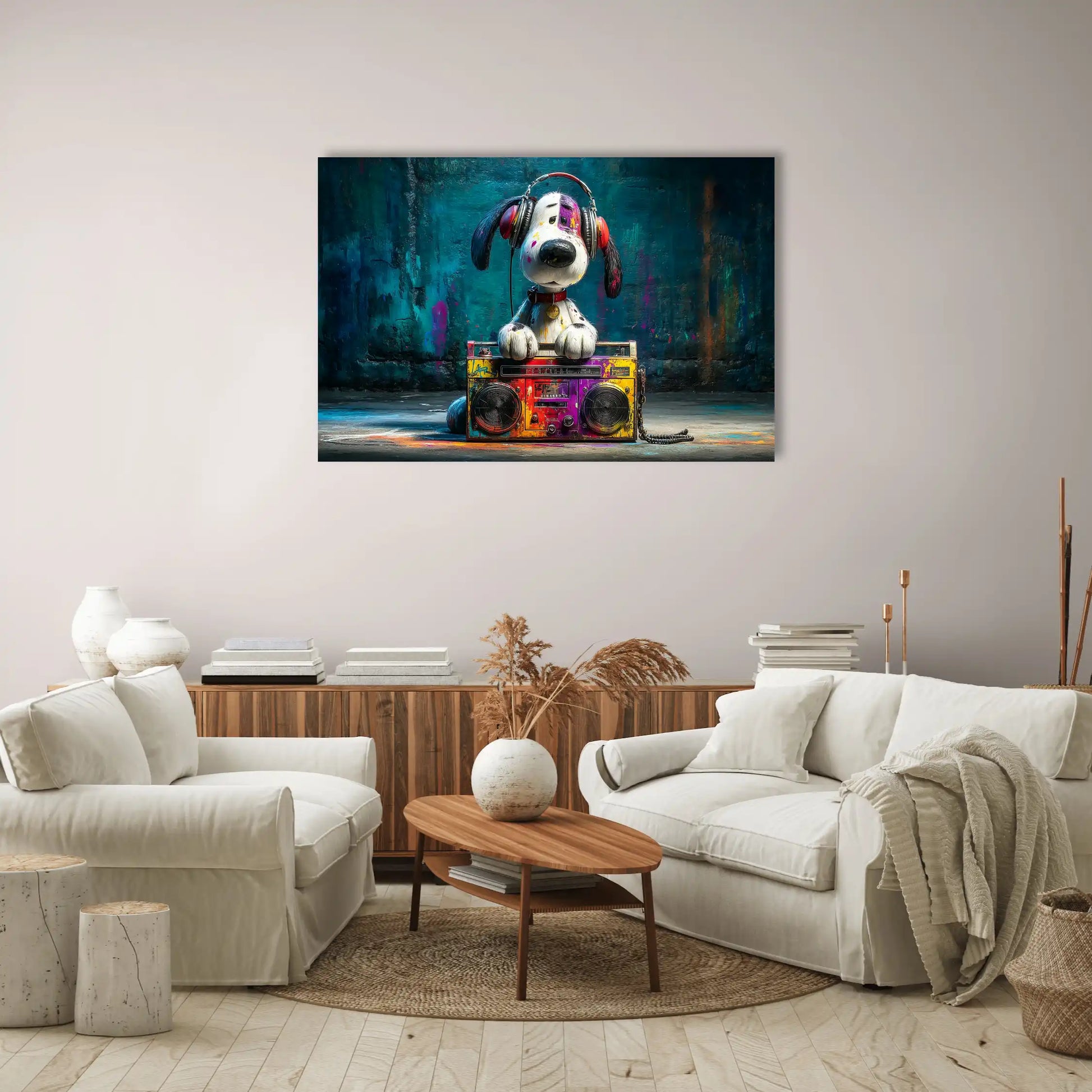 Plus qu'un simple tableau mural, cette œuvre est une célébration de la culture musicale urbaine et de l'esprit ludique du street art. Elle évoque la nostalgie des années 80-90 tout en s'inscrivant parfaitement dans les tendances décoratives actuelles. Disponible en plusieurs formats, jusqu'au spectaculaire XXL pour un impact maximal, ce tableau grand format s'adapte à tous les espaces. L'impression numérique de qualité supérieure garantit une pièce qui conservera longtemps ses couleurs éclatantes et son charme irrésistible, comme un clin d'œil permanent à la vitalité de l'art urbain et à l'amour universel pour les chiens et la musique.