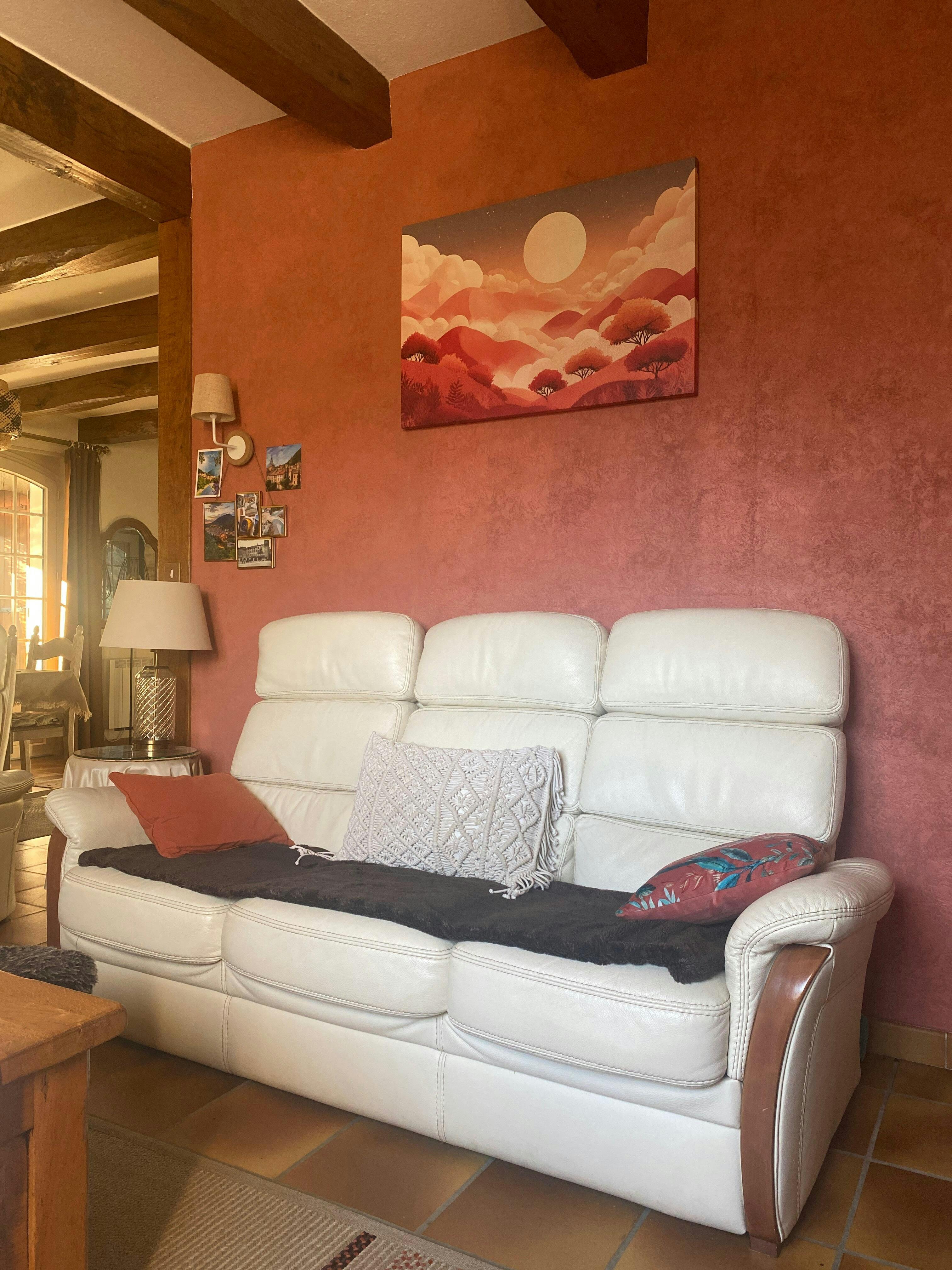Entre nuances terre cuite et douceur ivoire, cette pièce crée un cocon apaisant propice au repos. Retrouvez des œuvres au charme similaire dans nos tableaux terracotta, sélection pensée pour réchauffer chaque intérieur.